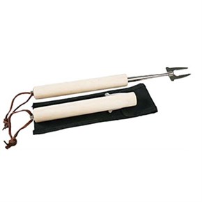 Grillgaffel med håndtak i tre. Uttrekkbar. 66 cm. Levert i futteral med beltefeste.