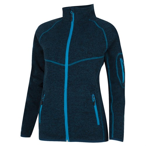 Figursydd fleecejakke til dame. Dekorative flatlocksømmer og kontrastdetaljer.