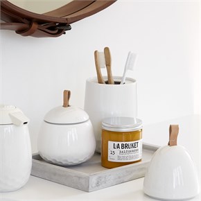Det flotte læret blir bare vakrere og vakrere med tiden, og gir badet sjarme og varme. Denne tannbørsteholderen i hvitt er perfekt til hele familiens tannbørster, som adskilles med en praktisk inndeler. La den være et estetisk innslag på badet.