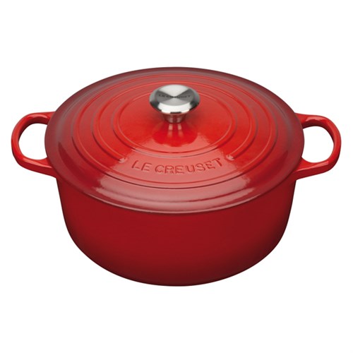 Den glatte emaljen på Le Creuset støpejern er både holdbar og hygienisk, brent ved en temperatur på 840°C. Ideell til gryteretter, supper, risretter, til baking. Tåler ovn, grill, fryser og oppvaskmaskin. Velegnet til alle komfyrtyper, inkl. induksjon. Livstidsgaranti. Fargen Cerise (rød).