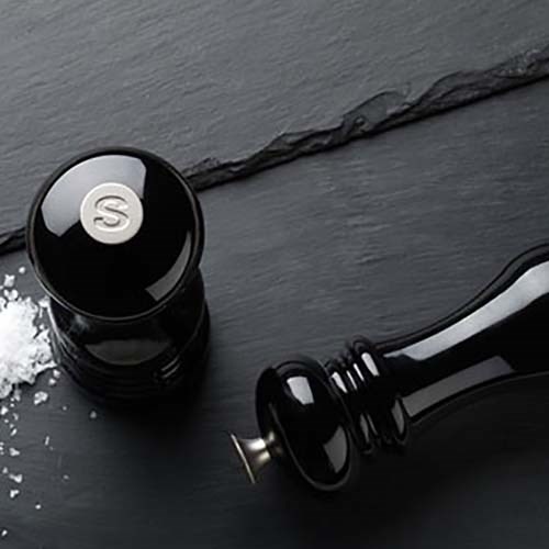 Krydderkverner i akryl med keramisk kvernhus. Metallknopp på toppen justerer kvernens grovhet. Høyde 21 cm.