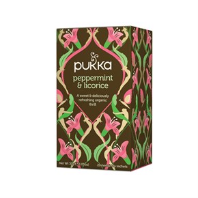 Rensende, nærende og herlig forfriskende! Inneholder 60% peppermynte som hjelper til med å regulere fordøyelsen og 40% naturlig søt, FairWild lakris som beroliger og ernærer. Fairtrade. Koffeinfri. 100% økologisk.